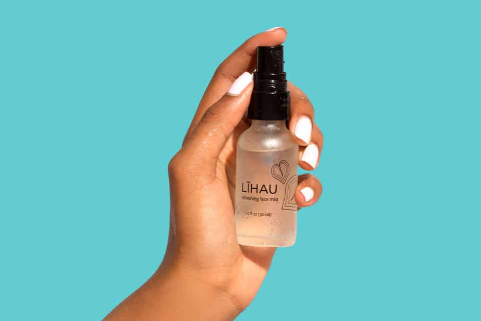 Hydrate skin with Honua LÏhau Refreshing Face Mist, an aloe and floral hydrosol infused with sandalwood, witch hazel and hyaluronic acid, to increase moisture and reduce inflammation.