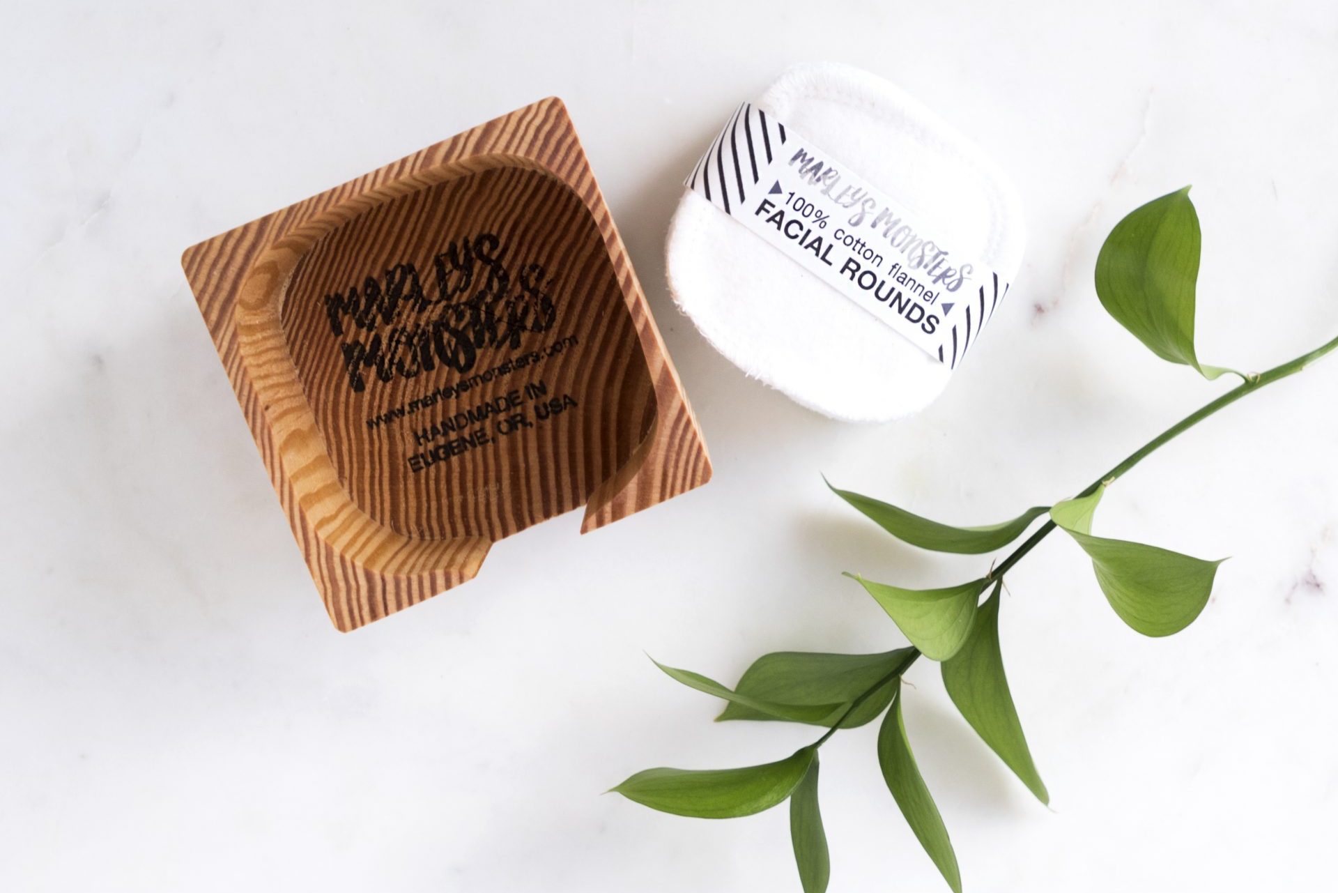 Marley’s Monsters set of Reusable cotton rounds, holder and mesh laundry bag – Perfect for a zero waste skincare routine, these reusable cotton pads remove makeup, softly and sustainably. Best yet, they are machine washable. Store them in a wooden holder and wash them in the mesh laundry bag. Contains 20 pads and they come in white, natural beige tones, grey and black and lemon print.