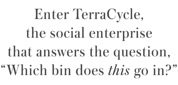 Present in 20 countries, TerraCycle tackles the issue of trash from many angles, acting as a resource for hard-to-recycle items through national, first of their kind recycling programs. Together, these programs fill the gaps in city-funded recycling programs, offering clearer instruction, easier access and fewer limitations about what, in fact, can be recycled. (At TerraCycle, everything can be recycled.)